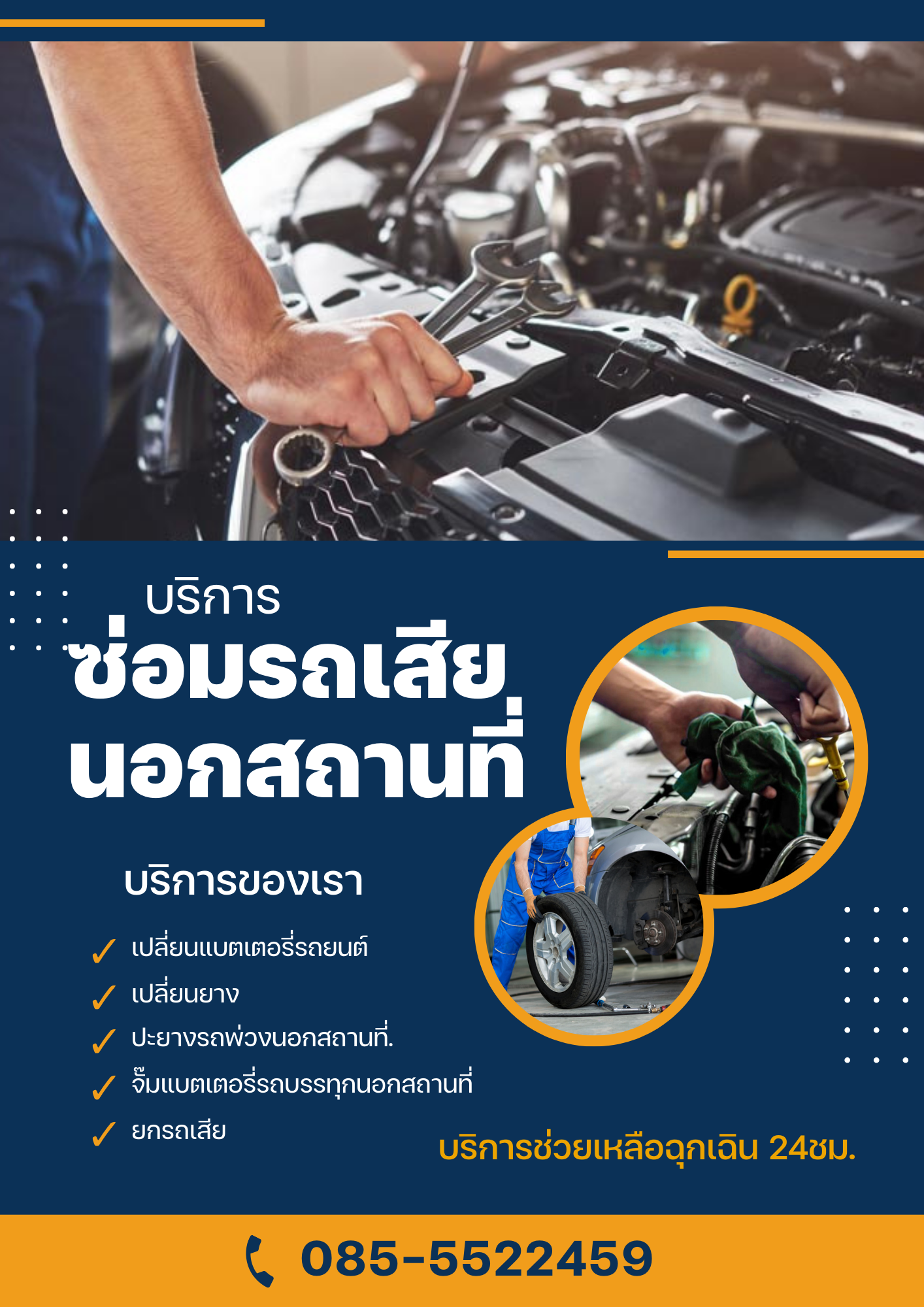 ไม่ต้องกังวล! เรามีบริการซ่อมรถถึงที่ รวดเร็ว ทันใจ ช่างมืออาชีพ บริการ 24 ชั่วโมง